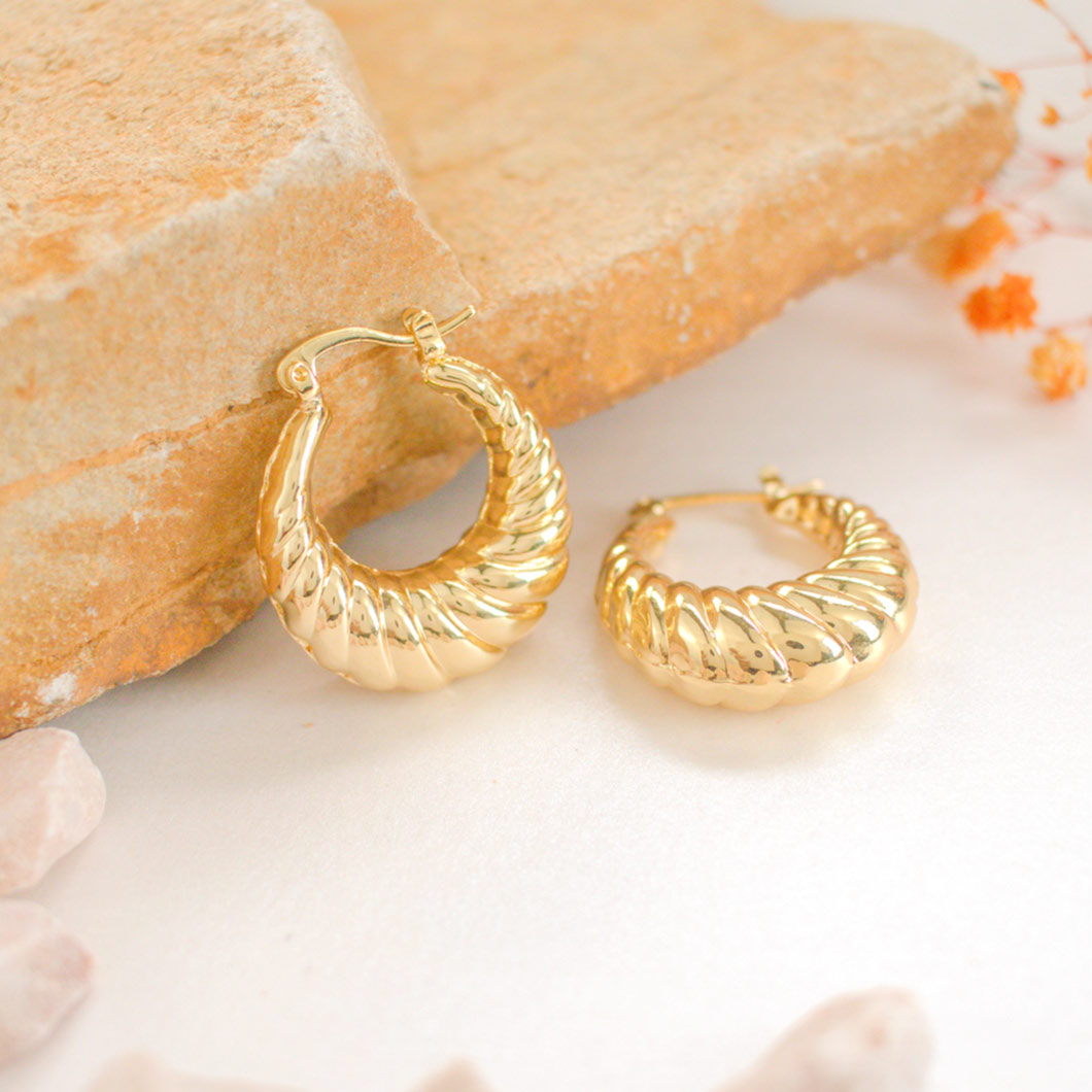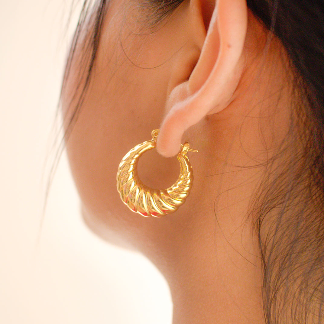Estas hermosas candongas doradas presentan un diseño de textura en espiral que añade un lindo toque. Son livianas, lo que las hace cómodas de llevar durante todo el día, y su estilo fresco y moderno seguramente realzará tu look.